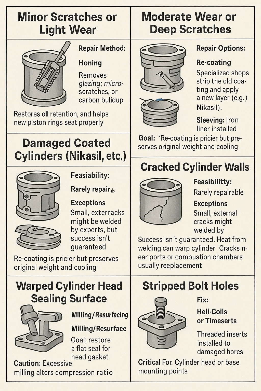 Absolument, cylindres de moto peut souvent être réparé en fonction du type et de la gravité des dommages. Voici une ventilation pratique :