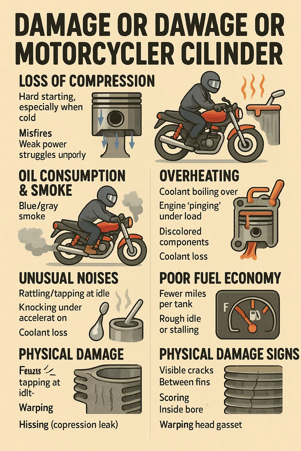 Voici ce qui se passe lorsqu'un cylindre de moto est endommagé ou usé, expliqué en termes pratiques :